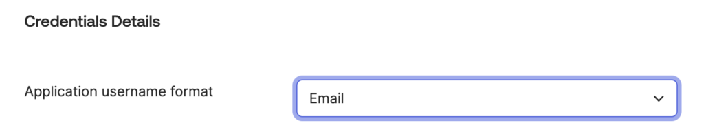 In the Credentials Details section, for Application username format, select Email.