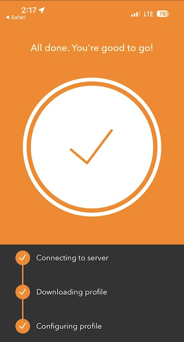 After successfully authenticating, a unique client cert and profile will be downloaded onto the device.
